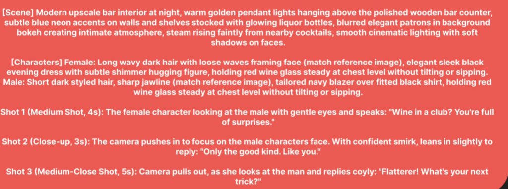 以上提示词内容当然可以再修正下,首先生图的大致提示词 给出了,然后每个分段中人物的动作也给出了。