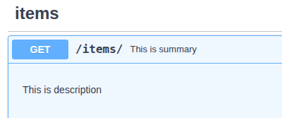 @app.get("/items/", tags=["items"], summary="This is summary"